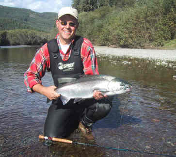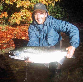 Albertian Cam is all smiles as he's catching large River Coho Salmon on the Fly