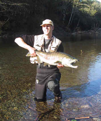 Flyfisher Guillaume from Belgium loves our Massive runs of Chum Salmon. They invade our rivers and are really great fighters