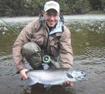 Bert from Holland battles another Fly caught Chrome Coho (Silver) Salmon