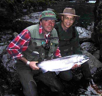 John and Ray with Chrome River Coho Salmon - so bright you need sunglasses!