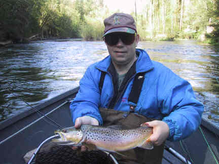 Paul displaying a nice Brown Trout, that fell for a pink lady fly