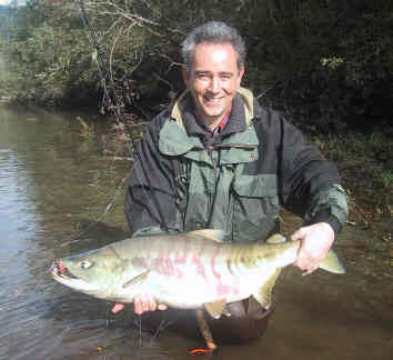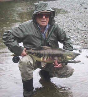 Flyfisher Guillaume from Belgium loves our Massive runs of Chum Salmon. They invade our rivers and are really great fighters