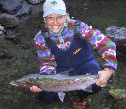 Outdoor TV Host Kim fooled a nice Summer Steelhead with a black nymph